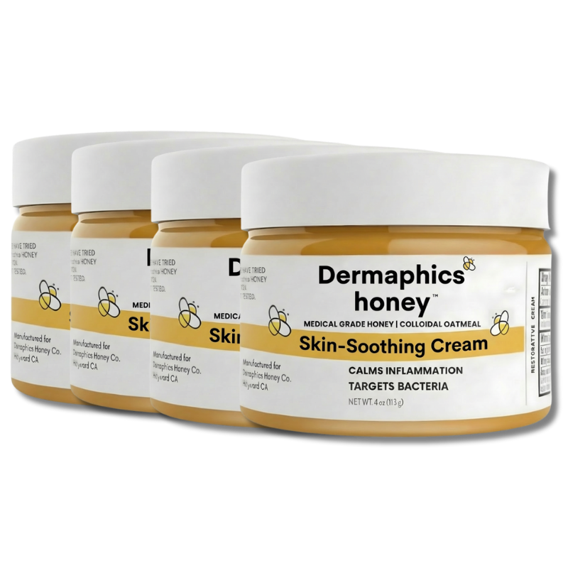 Unlike other honey-based products that leave a thick, sticky residue, Dermaphics absorbs into the skin in about 30 seconds. You can put pajamas on right after without them sticking to the cream.