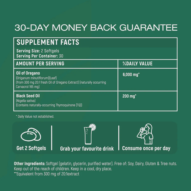 Unlike most options on the market, our Oil of Oregano is ethically sourced, infused with Black Seed Oil for superior absorption, and crafted with zero fillers, additives, or preservatives.